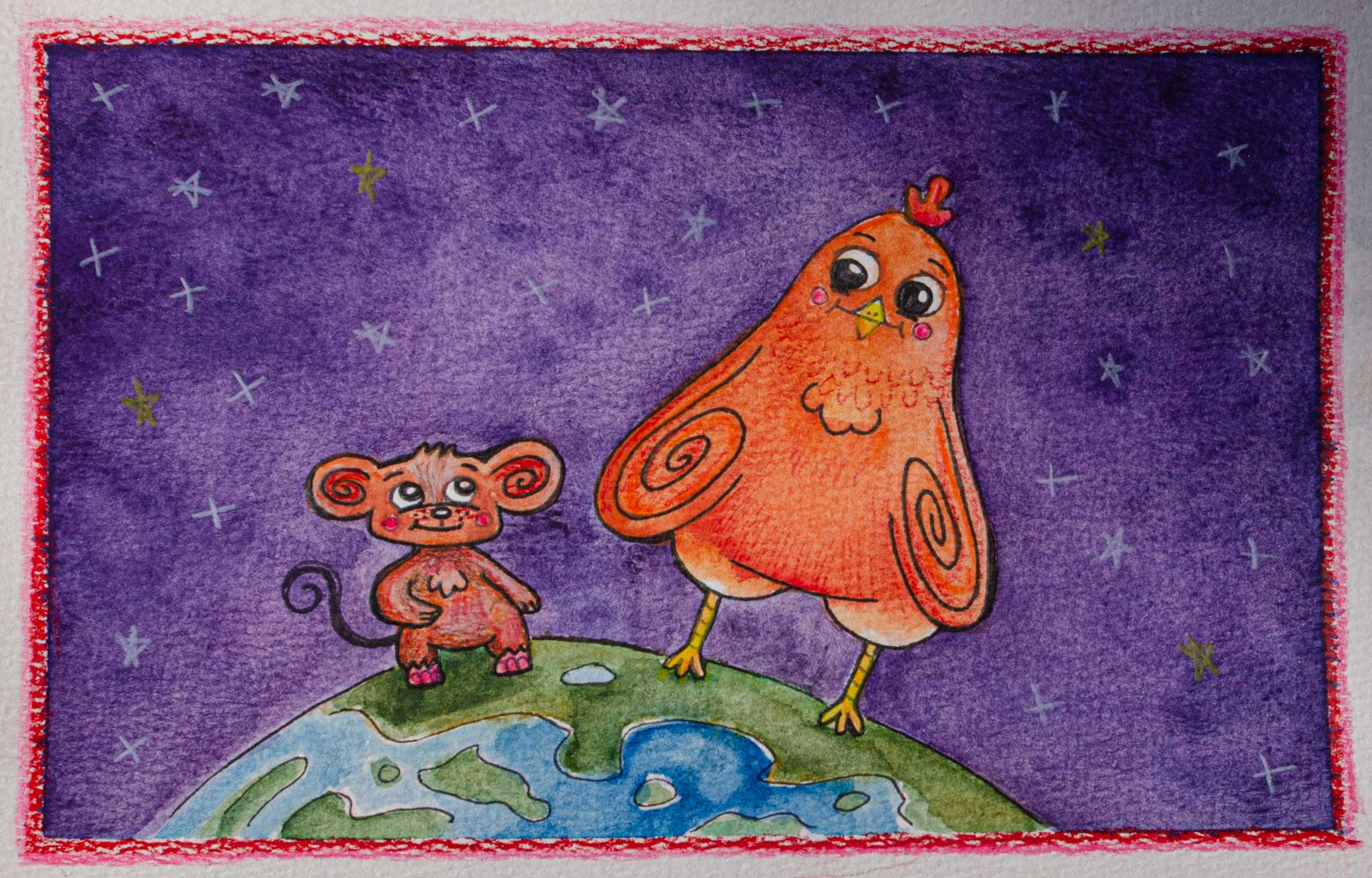 These children’s book illustrations were first sketched in pencil then drawn in adobe illustrator. Kuku the Kiki is a story about a brave little space alien that brightens the world. I am currently working on a dummy book for this story. Email me if you would like a copy ([email protected]).