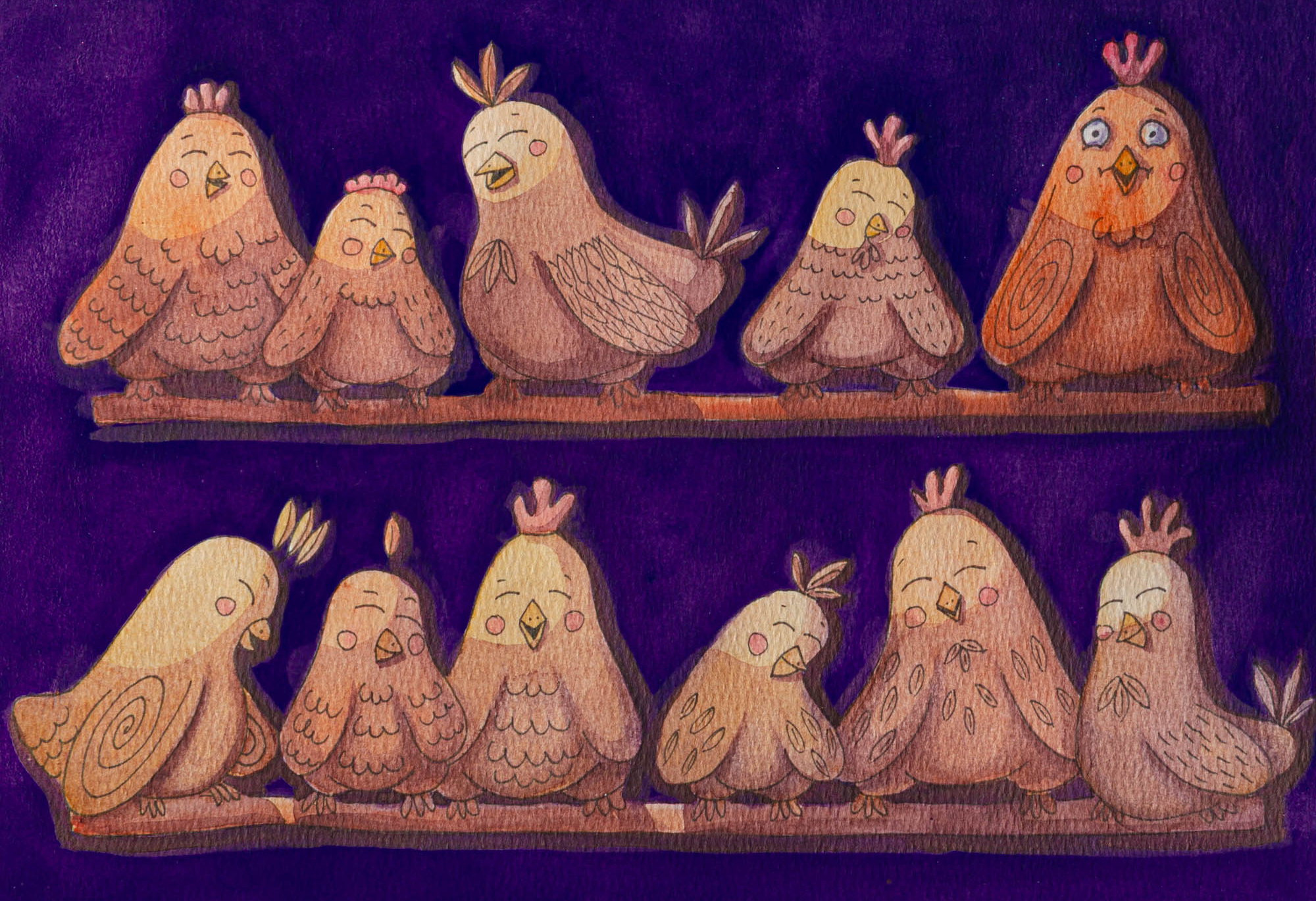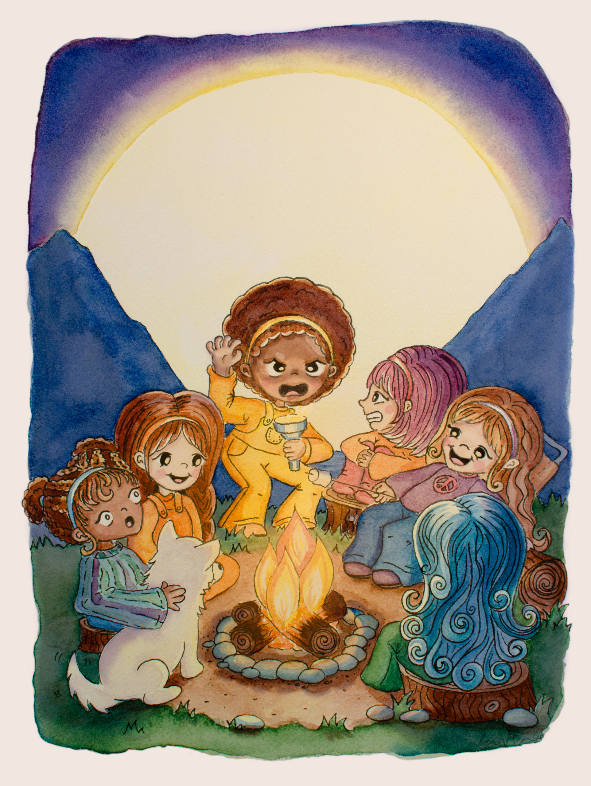 Here are examples of my painted picture book projects. I created these illustrations with pencil, watercolor, gouache and ink on cotton paper. Then, I photographed and digitally retouched them. Click on the images to see them in full screen.